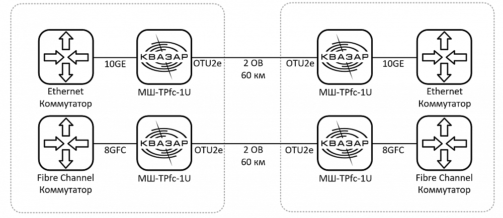 Рисунок 2 - Принципиальная схема организации канала 8GFC без применения WDM без резервирования