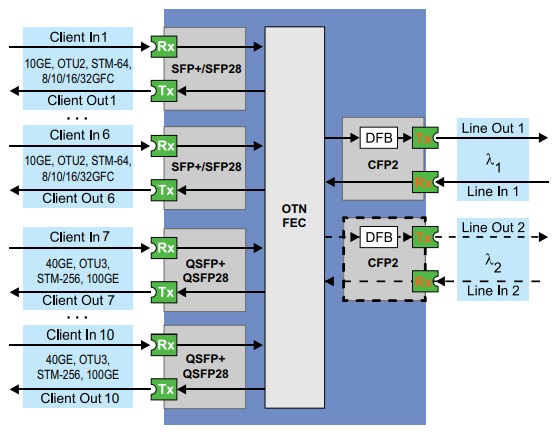 | Стандарт интерфейса | 10GE, OTU2, STM-64, 8/10/16GFC |